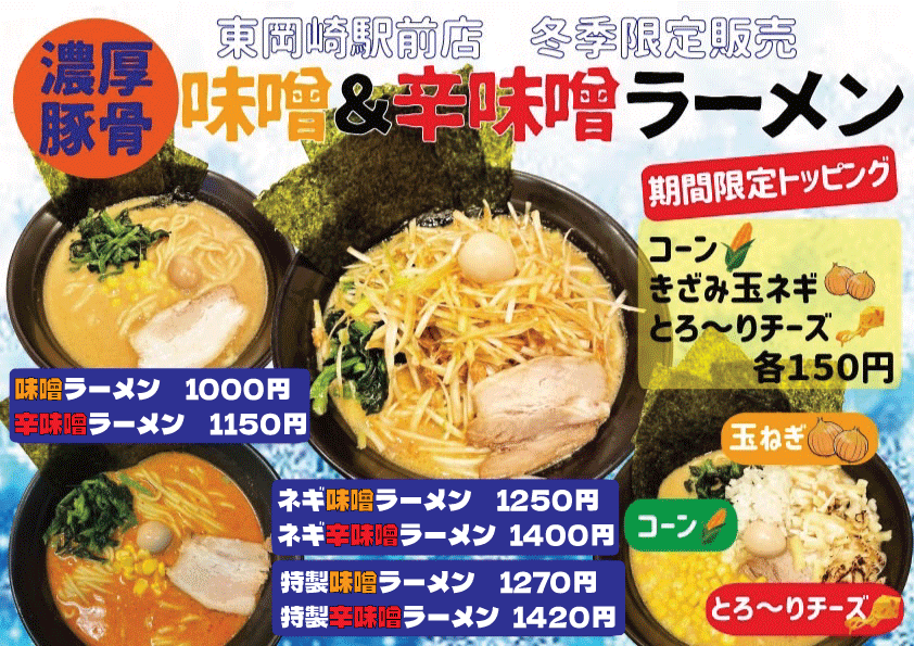 - 【東岡崎駅前店限定】濃厚豚骨 味噌&辛味噌ラーメン
