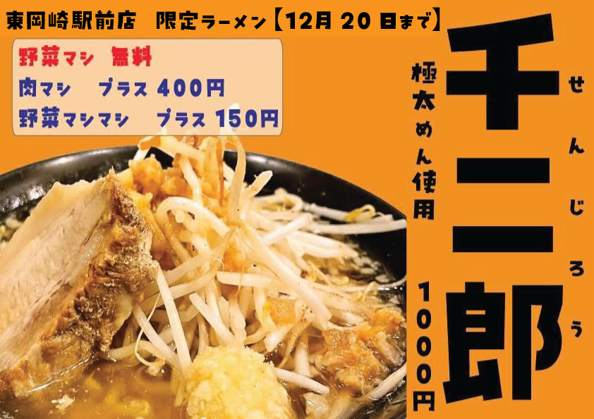 東岡崎駅前店でも極太麺が選べるようになりました!!